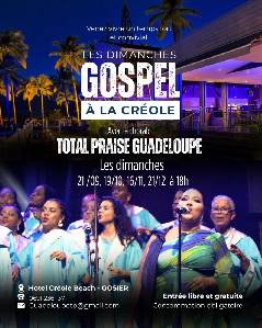 TOTAL PRAISE est une chorale de Gospel internationnale, qui existe à Paris, Comgo, Cote d'Ivoire, Dominique, Martinique.....et une nouvelle formation vient de voir le jour en GUADELOUPE.
